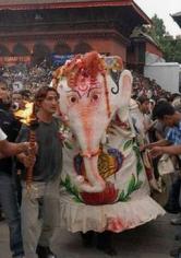 一年に一度、金色の山車に乗ったクマリが市街を廻って邪を祓(はら)うというのが、クマリの祭祀(さいし)とも言われる「インドラ・ジャトラ」なのです。インドラジャトラは10日間続きますが、山車はカトマンズの下町・中町・上町と3回牽かれ、山車の通り道にあるいくつかの舞台ではナラデビナァツ(ナラデビ女神と家族の神々の踊り)、マハンカルナァツ(カリ女神の物語の踊り)などが披露されます。クマリ、ガネシュ神、バイラブ神がそれぞれ乗った3つの山車と、グルカ兵の楽隊、ラケェ・プルキシ・サワバグなどの面を被った者が練り歩きます。人々は彼らにチューラ(ご飯をつぶして乾燥させたもの)や肉、酒、果物、昔ながらのお菓子、花、お金などさまざまなものを捧げます。